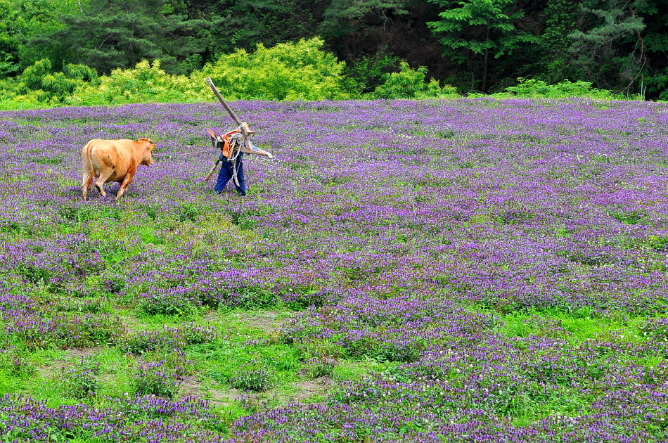 물론 축제를 위해 사진 모델이 되어준 것이지만 꽃과 사람 그리고 소가 곱게 어우러지는 풍경으로 남았다.