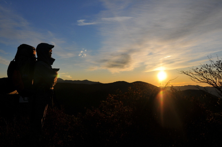 정상에서 제 아들이 일출을 바라보는 그림자 모델이 되었다.