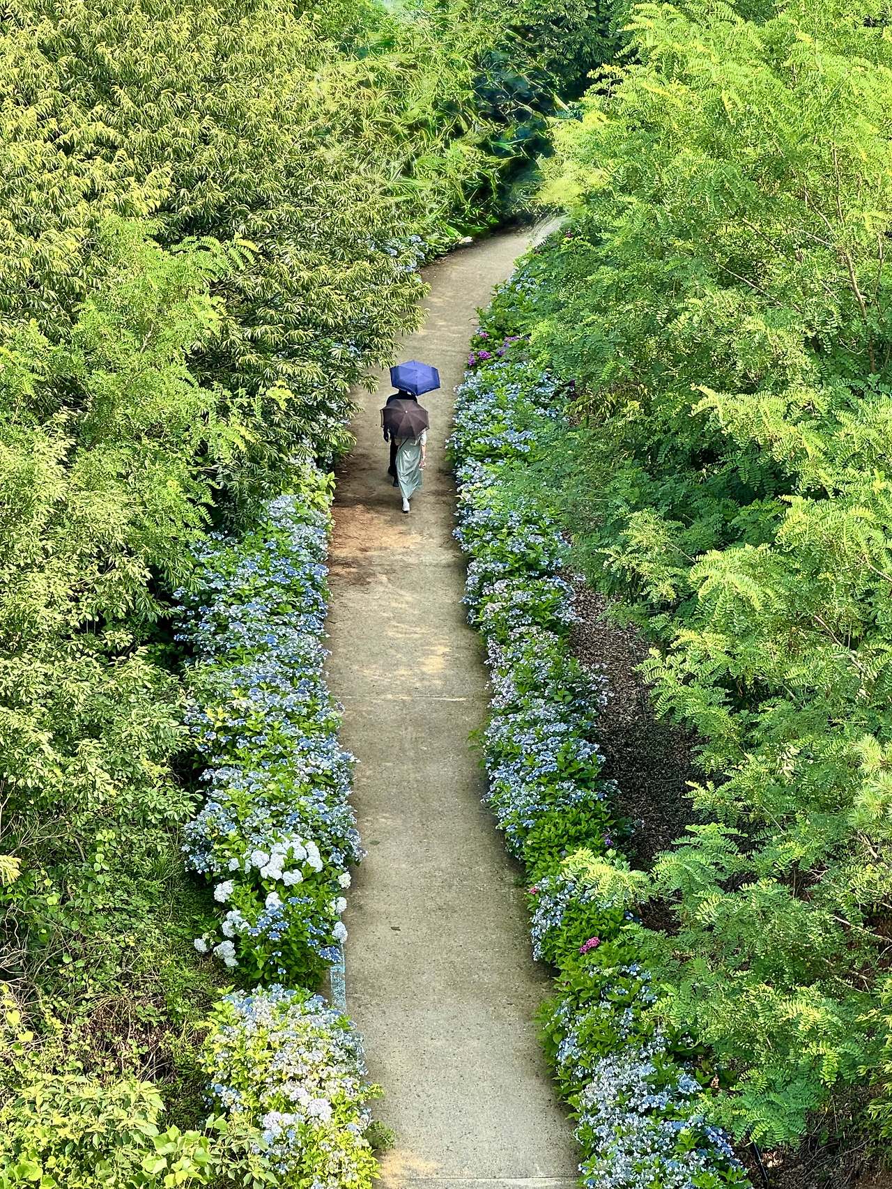 6월이면 수국꽃이 아름다운 느러지 전망대에 올라 바라본 수국 꽃길을 걷는 사람의 모습이 곱다.