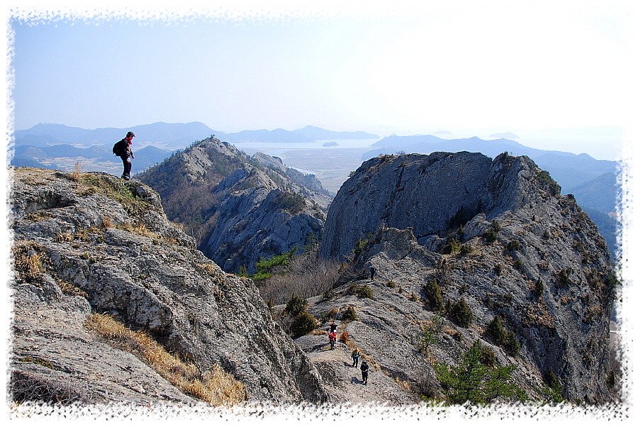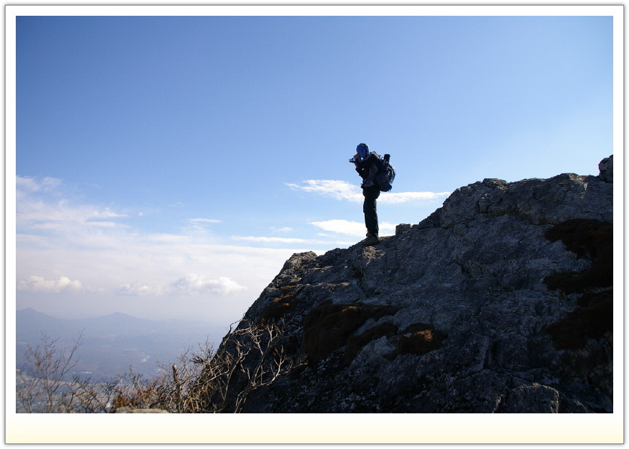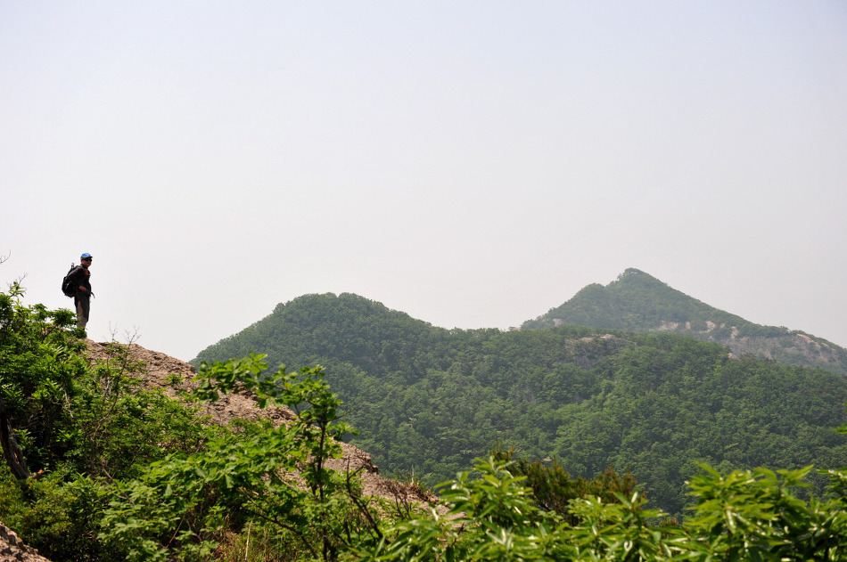 남원의 숨어있는 암릉산인 문덕봉을 산행하며 우연히 아스라한 능선 조망을 배경으로 담아본 사진이다.