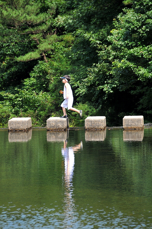 창고천의 깊은 계곡을 따라 비밀스럽게 자리하고 있는 안덕계곡에서 만난 아이의 모습이 마치 아이 요정과 같다.
