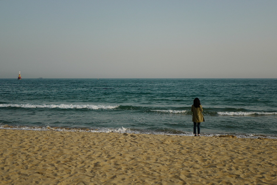 여인의 뒷모습은 모두 다 아름다운 걸까. 철 지난 쓸쓸한 해운대 바닷가의 풍경과 외롭게 그 바다를 응시하며 서있는 모습이 마치 하나의 풍경처럼 느껴진다.