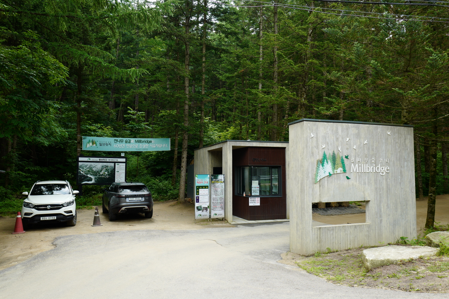 밀브릿지는 계방산 자락에 깊숙하게 자리하고 있다. 입구 주차장에 주차를 하고 입장료 2천원을 내고 들어선다.